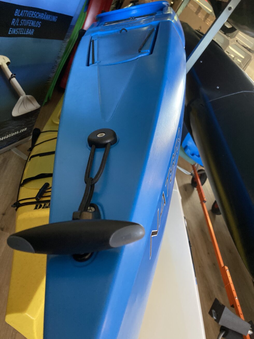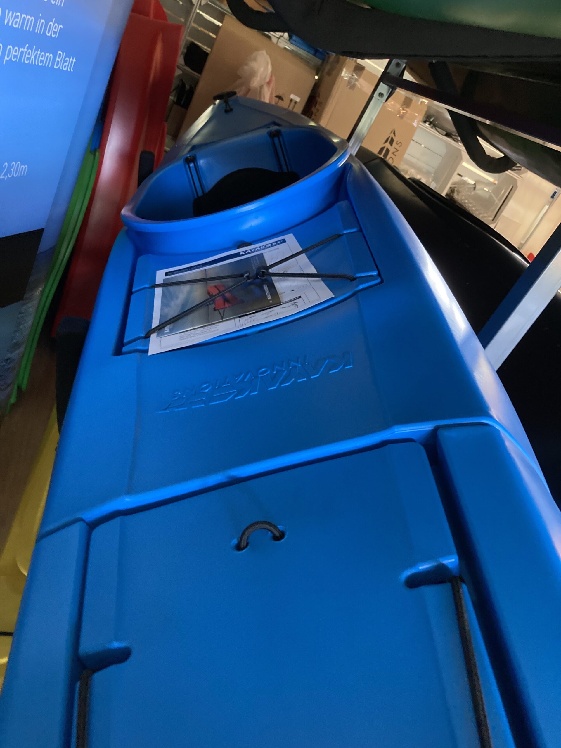 Sportliche Linienführung gepaart mit viel Platz in Bug und Heck als komplett nutzbarem Stauraum sowie ein riesiges Cockpit, in dem selbst über 2 Meter große Paddler:innen komfortabel Platz nehmen können.